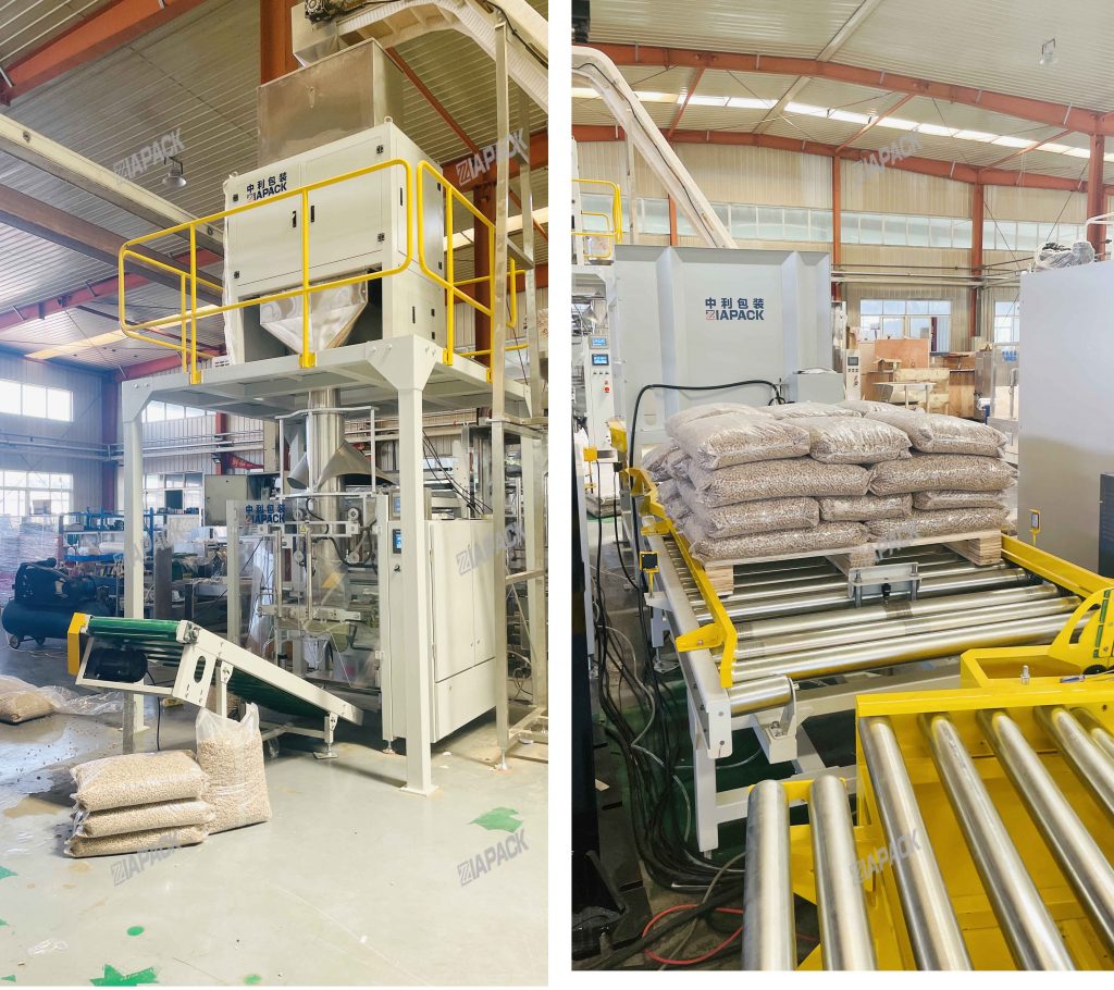 आप यहाँ हैं: होम » समाचार » 15 किलो वजनी लकड़ी के छर्रे, फिलिंग बैगिंग, पैलेटाइजिंग लाइन डिलीवरी के लिए तैयार है