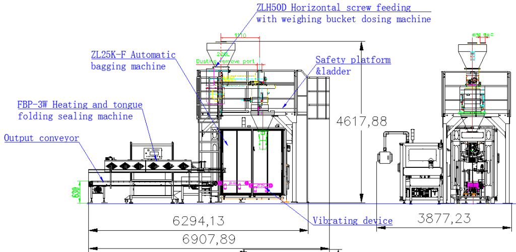 This line is special design for automatic weighing the bulk powder filling bagging in to 15-25kg karft paper bag then sealing the bag .According the client requirement we also need offer the automatic weight check ,metal detector and palletizing .The seller completed the design, manufacturing and supply of the production line in strict accordance with the technical requirements and combined with its own packaging line design experience in the sugar industry.