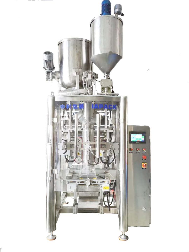 इस इकाई को द्रव और चिपचिपे उत्पादों की जरूरतों के लिए विकसित किया गया था। इकाई एक ग्राउटिंग मशीन और एक पैकेजिंग मशीन से बना है; पैकेजिंग मशीन की एक सरल संरचना है और इसे संचालित करना आसान है; मशीन बैग बनाने, भरने, सील करने और गिनती के कार्यों को एकीकृत करती है। यह फिल्म को खींचने के लिए एक सर्वो मोटर का उपयोग करता है और इसमें स्वचालित विचलन सुधार कार्य होता है।